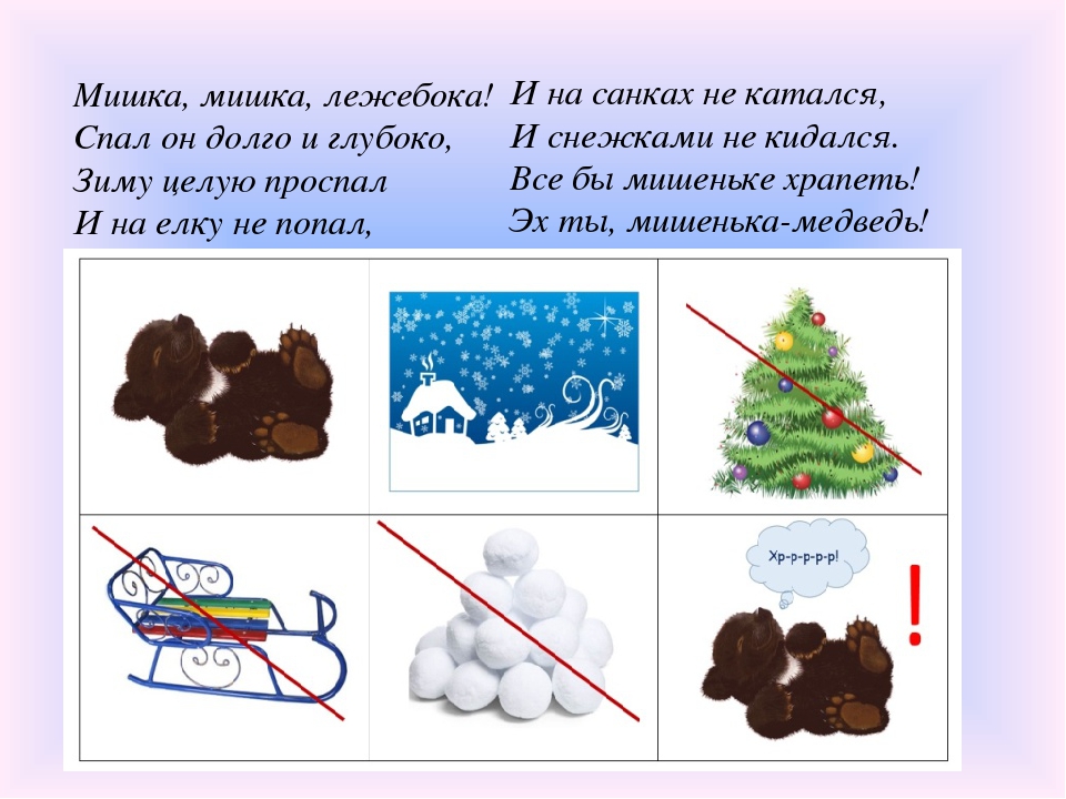 Работа с мнемотаблицей к стихотворению «Мишка, мишка, лежебока!»