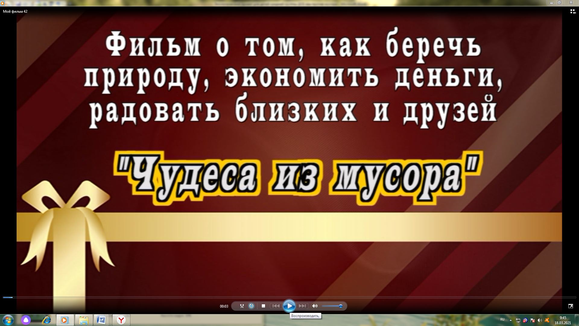 Детям очень понравился этап проекта, который назывался «Вторая жизнь мусору». На этом этапе были просмотрены мультфильмы: «Мальчик и Земля», «Смешарики – сборник по экологии», «Бернард и сортировка мусора», «Робокар Поли: Суета вокруг мусора», « Фиксики. Новенькие – Мусор». Совместно с родителями был проведён конкурс «Чудеса из мусора». Подводя итоги конкурса, было принято решение, вручить грамоту всей группе. И в завершении проекта было проведено развлечение «Чудеса из мусора»