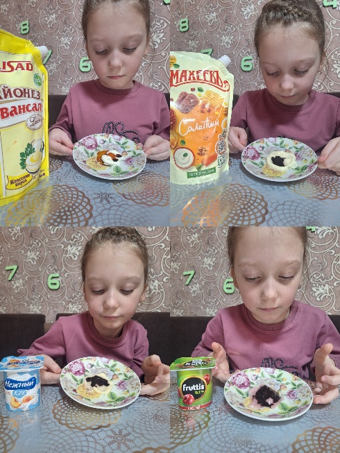 Из данной таблицы видно, что не во всех продуктах питания растительного происхождения содержится крахмал. Например, мы его не обнаружили в моркови и яблоках. Крахмала в них нет, или содержится так мало, что реакции с йодом не происходит. Среди продуктов растительного происхождения больше всего крахмала мы обнаружили в муке, меньше в картофеле. Из продуктов, купленных в магазине в майонезе «Провансаль» крахмал не обнаружен, а вот в майонезе «Махеев» его много. Из исследуемых йогуртов в йогурте «Нежный» крахмал есть и в составе он был указан, во «Фруттисе» его нашли, хотя в составе крахмал не указан. Крахмал не обнаружили в йогуртах «Растишка» и «Фруттелла». В обоих исследуемых сортах колбас крахмал обнаружен, в варёной колбасе много, а в полукопчёной колбасе мало. А вот в домашнем мясе и молоке «Белый медведь» его нет.