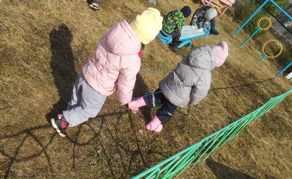 Через него нужно пролезть. (пролезание в туннеле поочередно)
