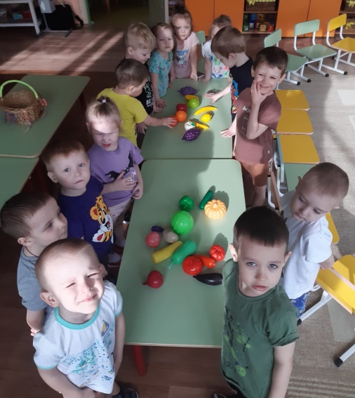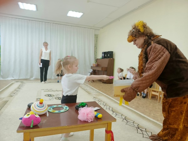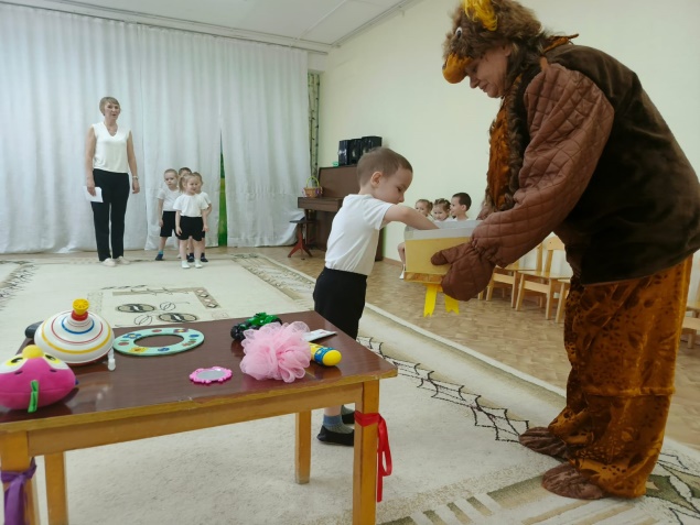 Дальше бежит следующий ребенок, выбирает другой предмет личной гигиены и несет его в корзину. И так все дети по очереди.