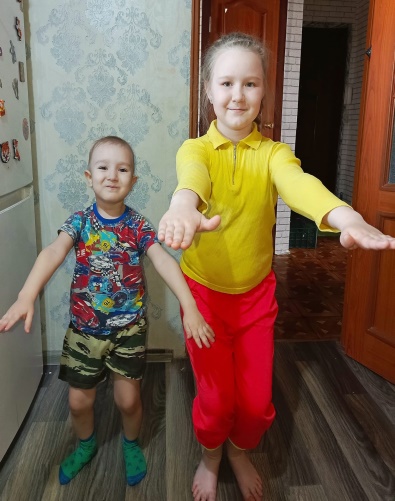 Повернулись все друг за другом, за мною шагом марш. Выполняем упражнения старательно и четко, проговариваем слова громко. (Музыка)