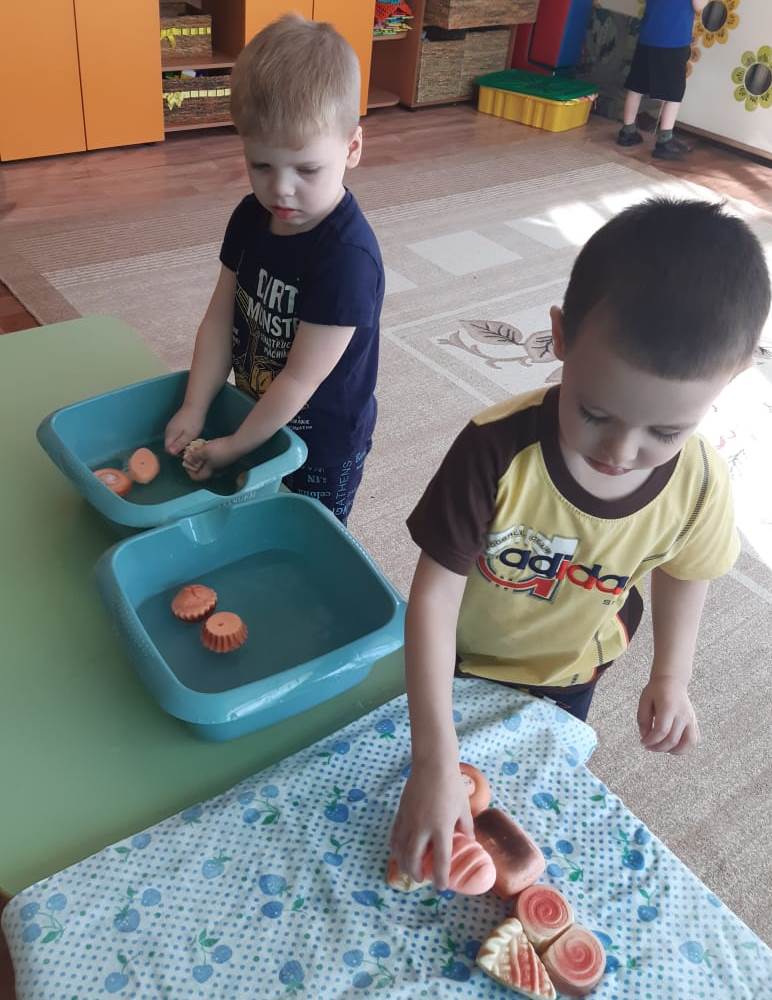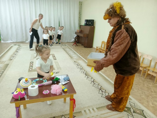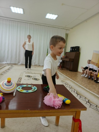 Дальше бежит следующий ребенок, выбирает другой предмет личной гигиены и несет его в корзину. И так все дети по очереди.