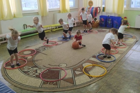 -На болоте есть много кочек, по которым я перепрыгиваю. Как эти обручи. (прыжки из обруча в обруч. 7 -10 штук)