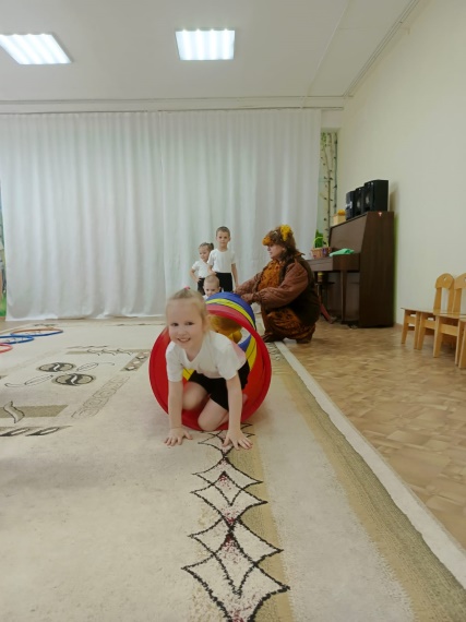 Через него нужно пролезть. (пролезание в туннеле поочередно)