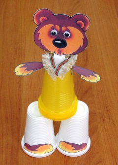 Только для куклы Мишка сделали отдельно лапы на двух стаканчиках.