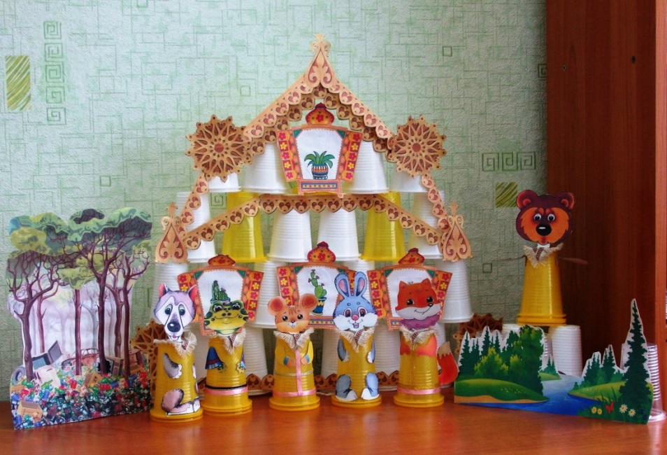 Изготовление оригинальных кукол и декораций для настольного театра «Теремок» из пластиковых стаканчиков.