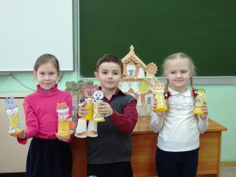 По такому же принципу смастерили всех кукол и декорации настольного театра «Теремок».