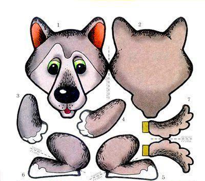 2.Приклеили детали на картон и вырезали. Сложили и склеили переднюю и заднюю часть головы, лапок, хвостиков.