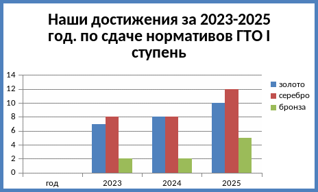 За три года доля детей, получивших знаки отличия, растет доля детей, успешно сдавших нормативы ГТО (все знаки), выросла с 70 % (2023) до 100 % (2025) - полный охват участников.