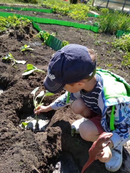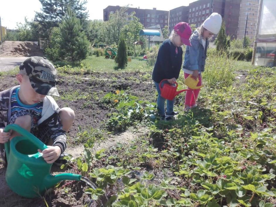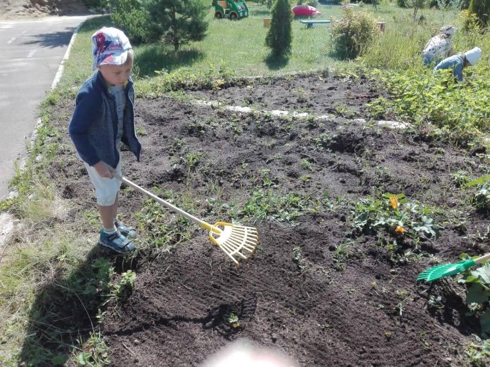 Активно используем труд в природе: осенью — уборка сухих листьев, веточек; зимой — очистка участка от снега. Труд в уголке природы имеет большое воспитательное значение. У детей формируется бережное, заботливое отношение к природе, воспитывается ответственное отношение к своим обязанностям. В процессе ухода дети получают представления о многообразии растительного мира, о том, как растут и развиваются растения, какие условия для них нужно создавать. Каждый год организуем вместе с детьми «Высадку огорода». Огромный интерес у детей вызывает процесс посадки овощей. Дети учатся совместно работать, ухаживают и наблюдают за результатом своего труда. Рассказываю о пользе выращенных растений. Стараемся подвести понимание детей к тому, что без воды, света и тепла растение не выживет. Все это способствует накоплению экологических знаний и понятий, обогащает экологический опыт детей.