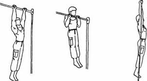 Юноши: Подтягивание на высокой перекладине выполняется из ИП: вис хватом сверху, кисти рук на ширине плеч, руки, туловище и ноги выпрямлены, ноги не касаются пола, ступни вместе.