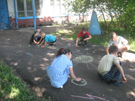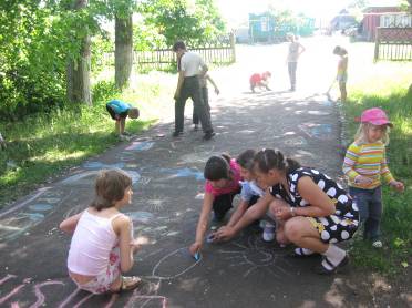 С приходом весны, проводим уроки изобразительного искусства на улице. Рисуем на асфальте.