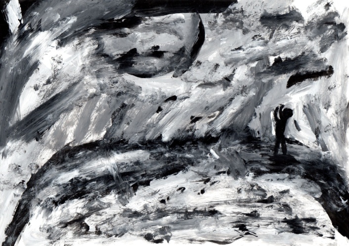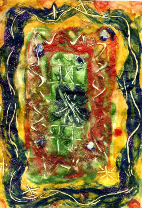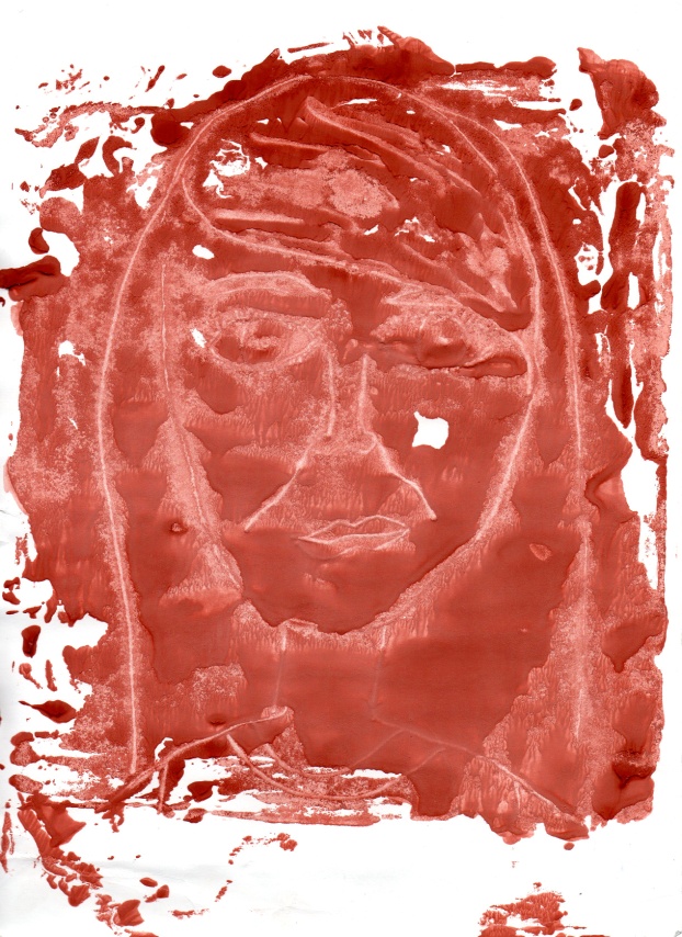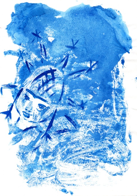 Монотипия. На стеклянную поверхность наносится рисунок. Какой угодно. Сверху на свежее изображение накладывается лист бумаги и придавливается к поверхности. Получается оттиск в зеркальном отражении.