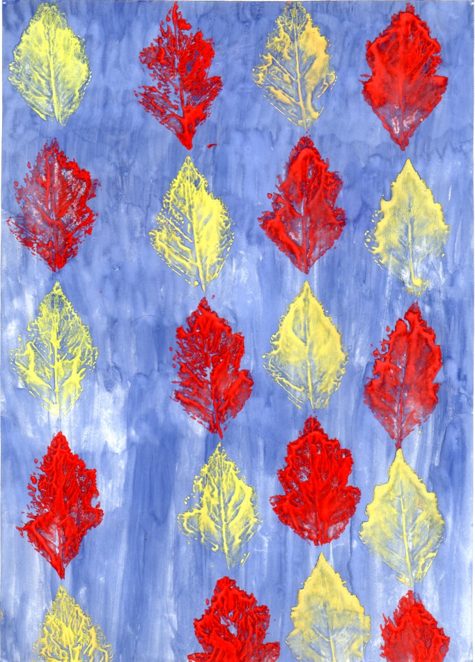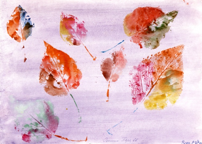Печатание - техника изображения с помощью печатей. Настоящий лист дерева, растения намазывают краской и отпечатывают на бумаге. Можно печатать спичечными коробками, ключами, ластиками, разрезанным картофелем, яблоком.