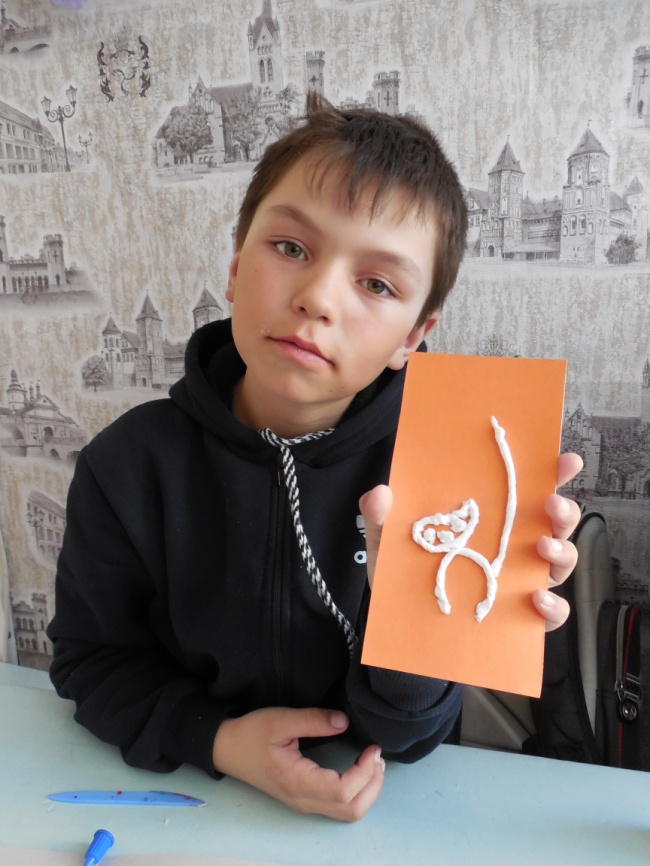 «Пластилиновое рисование» используется тогда, когда необходимо отвлечь детей от грустных мыслей, депрессии. Оно отвлекает внимание детей на процесс «действования», моделирования новой, более конструктивной картины мира. С другой стороны, оно дает возможность в социально приемлемой форме «выплеснуть» агрессивные эмоции, сплющивая и размазывая пластилин по картону.