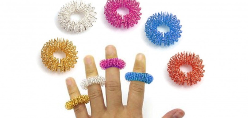 Массаж пальцев эластичным кольцом. Дети поочередно надевают массажные кольца на каждый палец, проговаривая стихотворение пальчиковой гимнастики/