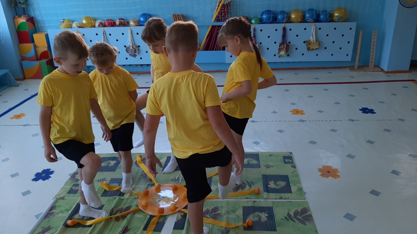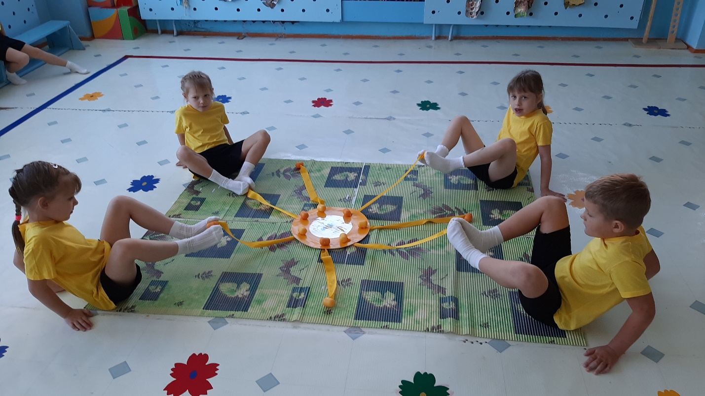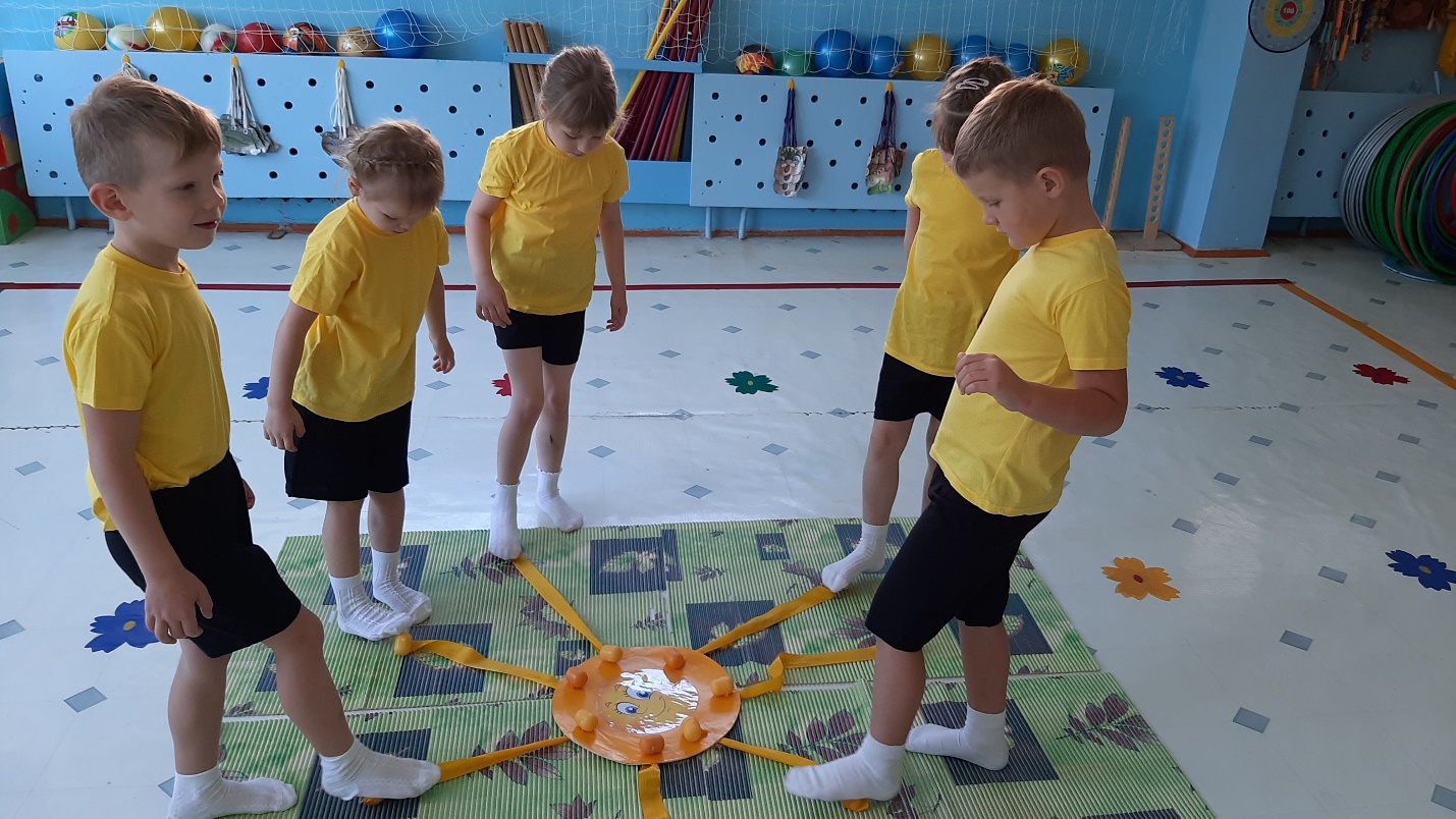 Количество детей, участвующих в игре на 1 больше, чем лучиков. Пока играет музыка, дети ходят вокруг солнца. Музыка замолкает-дети должны занять место у лучика. Кому не досталось – выбывает из игры. Игра продолжается до того пока не останется один ребенок.