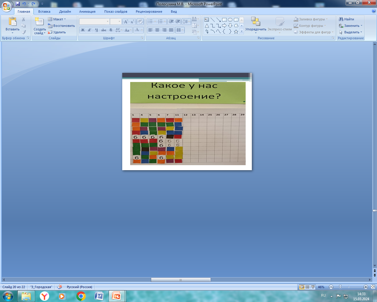 ( дети на экране отмечают свое настроение по методике цветописи А. Н.Лутошкиной)