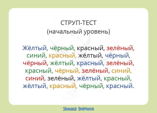 Тест на эффект Струпа помогает повысить умственную активность.