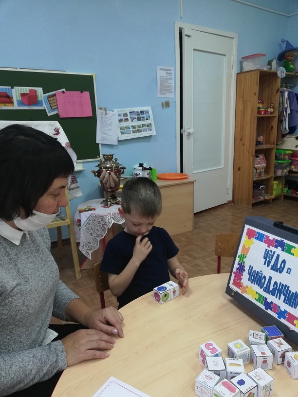 Мы должны научить детей последовательно, связно, грамматически правильно излагать свои мысли, рассказывать о различных событиях из окружающей жизни. Все мы знаем, что в современное время дети перенасыщены информацией, поэтому необходимо, чтобы процесс обучения для детей был занимательным, развивающим и в тоже время интересным. Чтобы достичь положительного эффекта, в формировании речевого развития, мы решили, совместно с учителем – логопедом и воспитателем комбинированной группы, использовать нетрадиционные формы работы с детьми, а именно , кубики, которые укомплектованы а игру «Чудо чемоданчик».