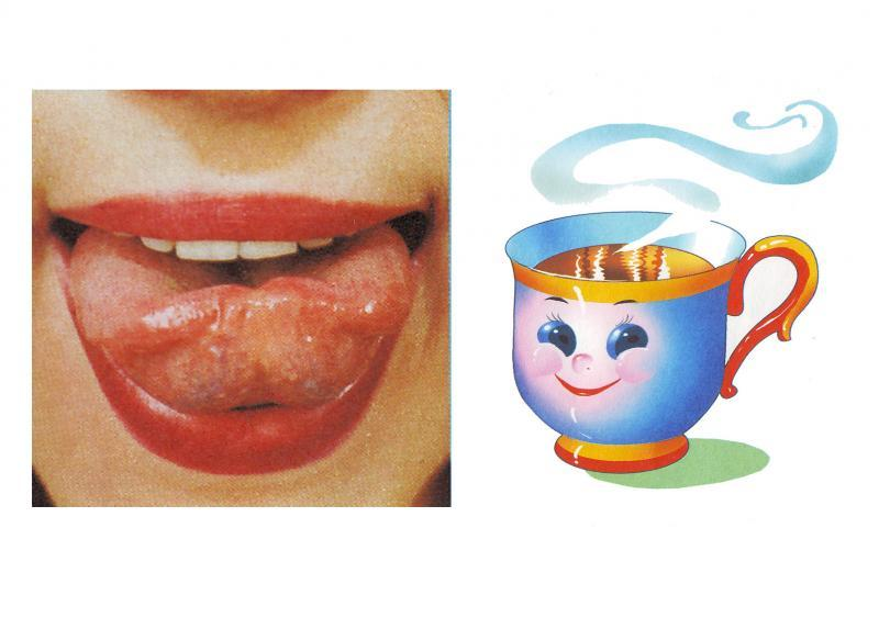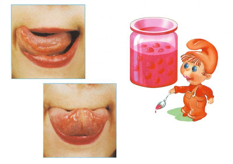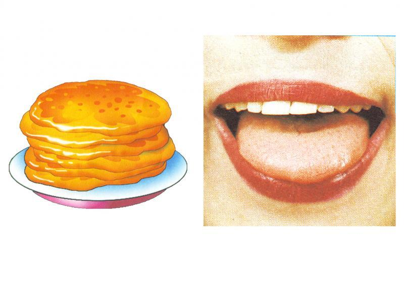 «Вкусное варенье» Улыбнуться, открыть рот и языком в форме «чашечки» облизать верхнюю губу. Движения направлены сверху вниз. Можно продолжить движение и убрать язык в рот, не разрушая «чашечки»)