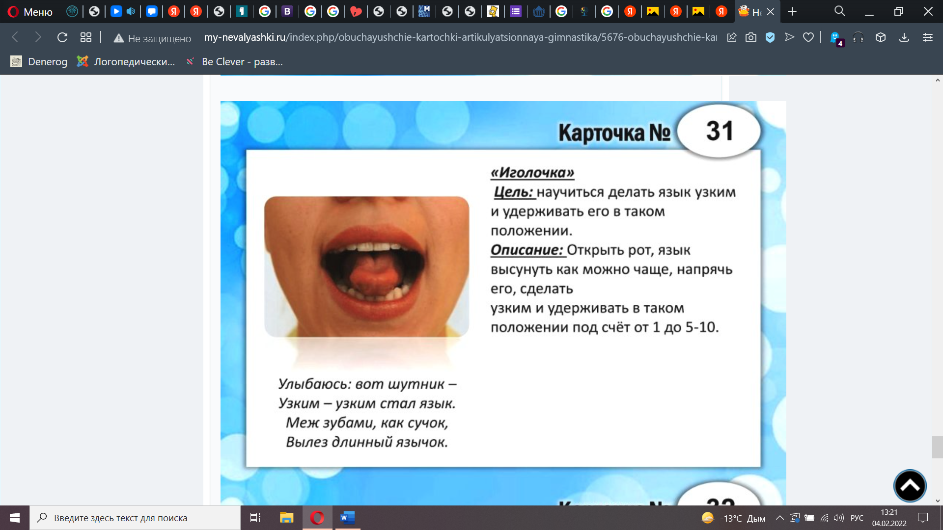 «Лошадка» Присосать язык к небу, цокать языком медленно и сильно. Следить за тем, чтобы нижняя челюсть не двигалась: