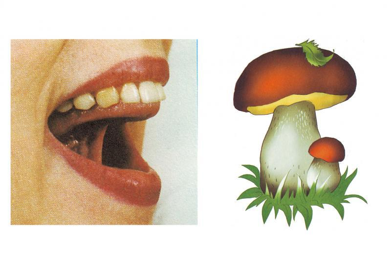 «Грибочек» Открыть рот, язык присосать к верхнему небу. Удерживать в таком положении язык в течение 5-10 секунд. Если так сделать не удается, то вернитесь к упражнению «лошадка»:
