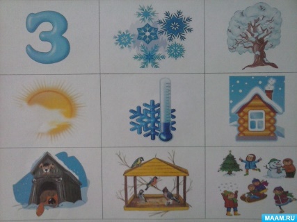 б) закреплять умение составлять описательный рассказ о зиме с помощью мнемотаблицы