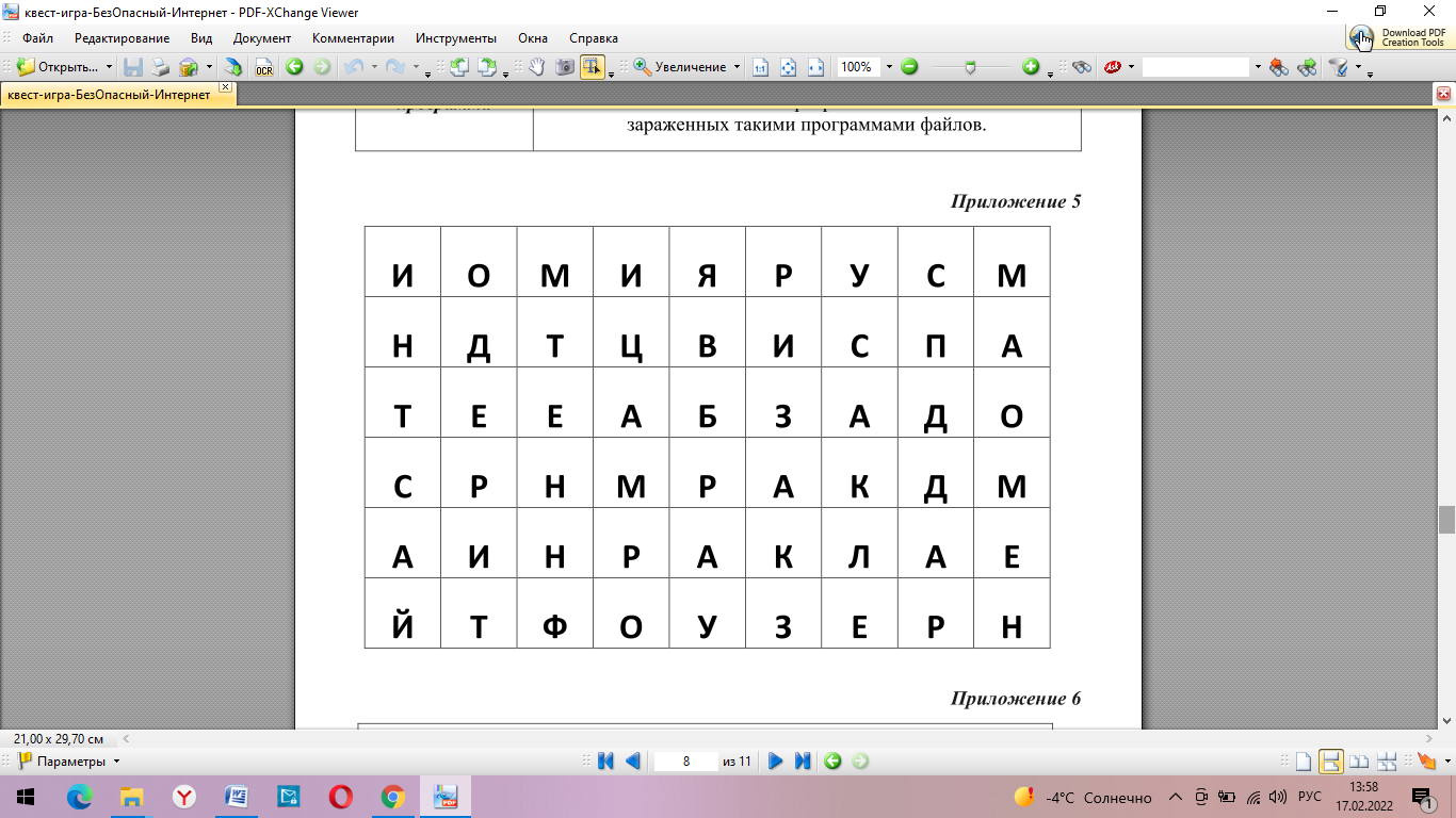 Перед вами поле с засекреченными словами, ваша задача найти как можно больше слов, связанных с интернетом, за каждое найденное слово вы получаете 1 балл.