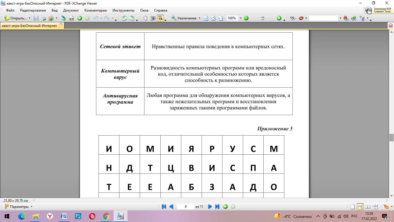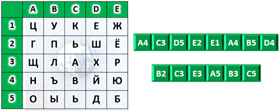 7)Никто не хочет, чтобы его личную переписку узнал кто-то чужой. Для этого тебе понадобится знать и помнить главное правило сохранности твоих данных. Выпиши буквы по их координатам и прочти два слова.