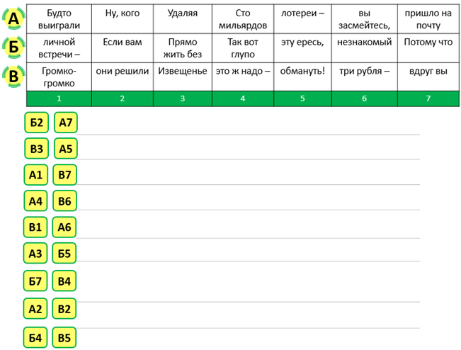 Б2 | А7 | В3 | А5 | А1 | В7 | А4 | В6 | В1 |