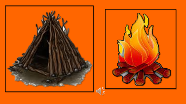 Пора устраивать привал. Тим и Том разводят костёр и делают шалаш. Кто принес ветки, а кто валежник?
