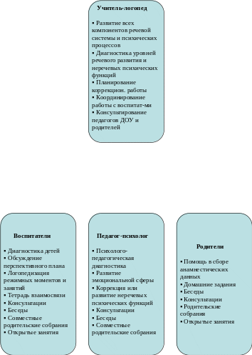 Одним из важных направлений коррекционно-образовательной работы является взаимодействие с педагогами и родителями, целью которого является создание коррекционно-образовательного пространства, полноценное развитие ребенка посредством тесного взаимодействия всех участников коррекционно-образовательного процесса.