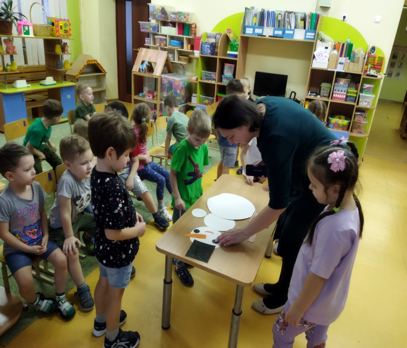 Конкурс-игра: « Слепи Снеговика» (проводится игра в командах, дети складывают снеговика из бумажных деталей).