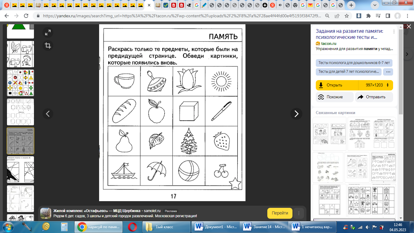 2. Упражнение «Запомни»инструкция: нарисуй или напиши по памяти