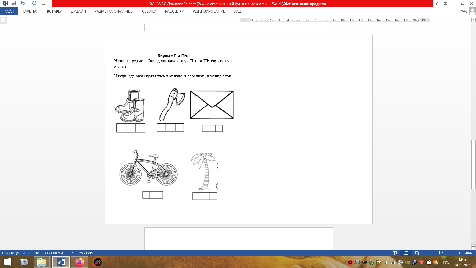 СЛ 3Отберите картинки, в которых содержится звук П, определи, где он находится: