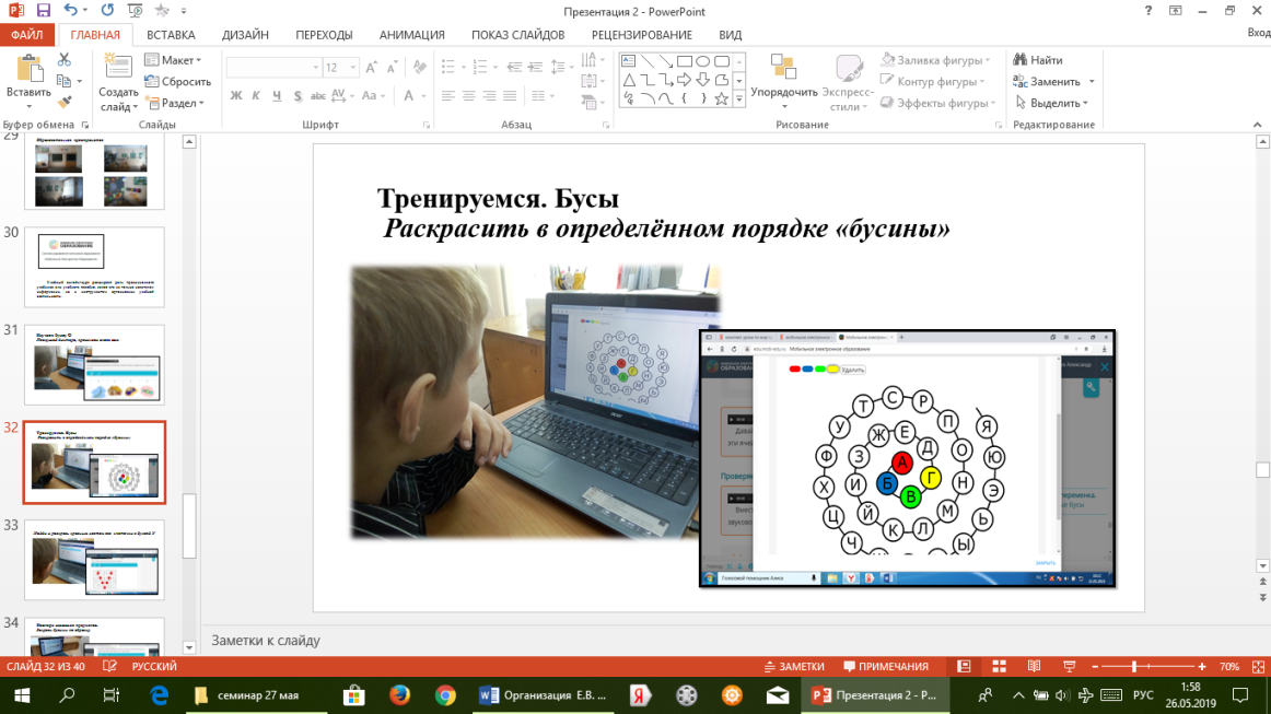 Разнообразность и разноуровневость содержания учебного онлайн-курса позволило использовать некоторые задания в работе с обучающимися по СИПР. Продукт (онлайн-курс) обеспечивает организацию, развитие и реализацию самостоятельной деятельности обучающегося. Освоение учебного материала происходит в комфортном для обучающегося темпе.