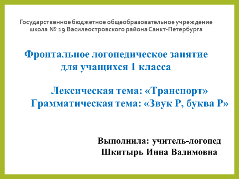 09.07.2024 "Транспорт" Принять участие в этом конкурсе Описание конкурса Список всех конкурсов Шкитырь Инна Вадимовна ГБОУ СОШ № 19 Василеостровского района Конкурсная работа Свидетельство участника экспертного совета жюри Свидетельство можно заказать сразу, как Вы оставите не менее 3 объективных комментариев в этом разделе сайта. Узнать подробнее Занятия психолога с детьми 2-3-х лет в период адаптации к дошкольному учреждению Выступление на семинаре: "Работа учителя-логопеда в условиях детского дома" У вас недостаточно прав для добавления комментариев.Чтобы оставлять комментарии, вам необходимо авторизоваться на сайте. Если у вас еще нет учетной записи на нашем сайте, предлагаем зарегистрироваться. Это займет не более 5 минут.