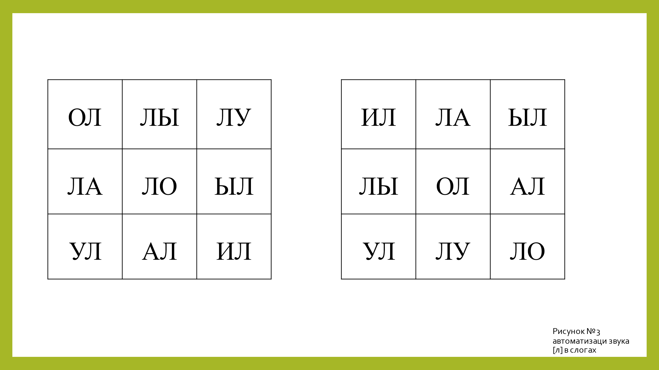 Для автоматизации звука [л] в слогах использую такую таблицу(рис.3).