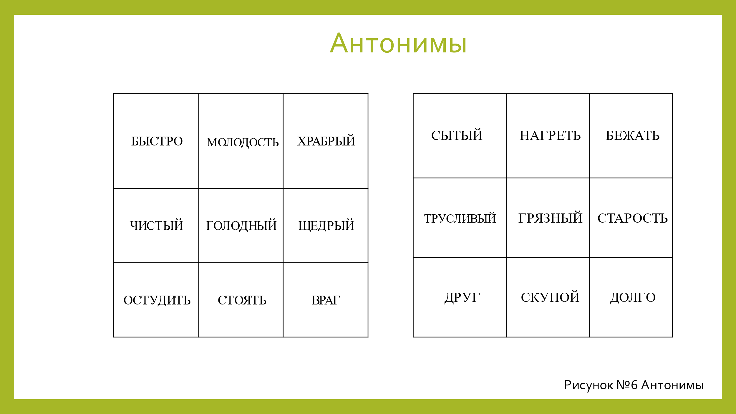 С помощью следующей таблицы помогаю ребенку закрепить слова с противоположным значением (рис.6).