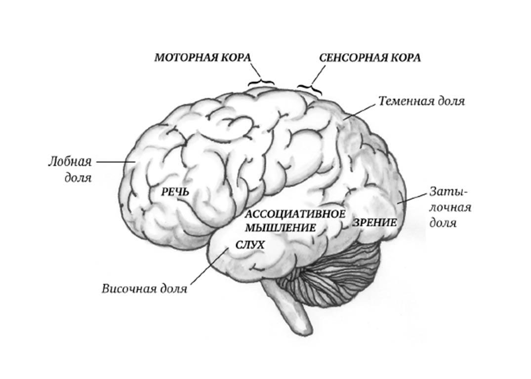Физиологической основой восприятия являются процессы, проходящие в органах чувств, нервных волокнах и ЦНС. Под действием раздражителей в окончаниях нервов, имеющихся в органах чувств, возникает нервное возбуждение, которое по проводящим путям передается в нервные центры, и, в конечном итоге, в кору головного мозга. Здесь оно поступает в сенсорные зоны коры, которые представляют собой как бы центральную проекцию нервных окончаний, имеющихся в органах чувств. В зависимости от того, с каким органом связана сенсорная зона, формируется определенная сенсорная информация (Рисунок 2).