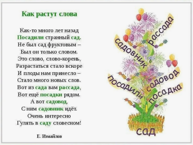 Цель: познакомить с понятием корень слова, учить подбирать родственные слова.