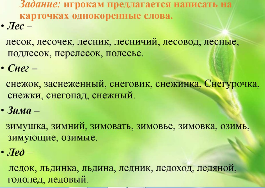 Задание: кто быстрее и правильно выделит корни в однокоренных словах.