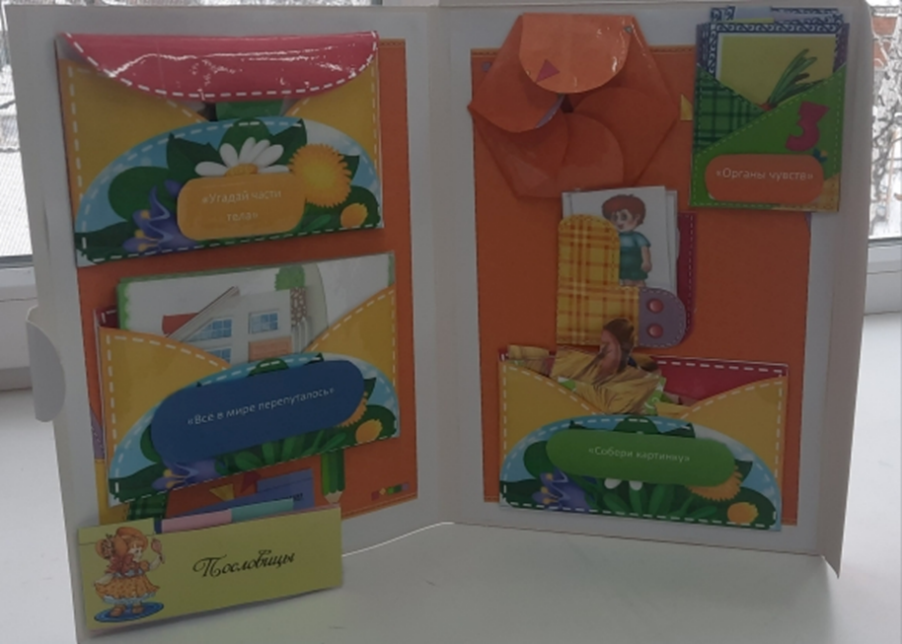 Лэпбук содержит следующие дидактические игры: «Пословицы», «Загадки», «Угадай части тела»,