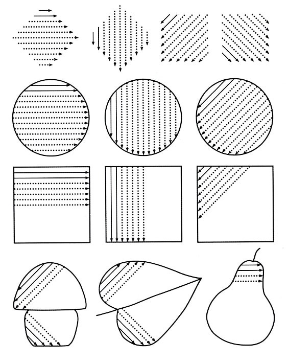 Детям полезно обводить контур картинок, состоящий из пунктирных линий, раскрашивать объекты различной формы.