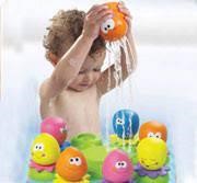 Наполните большой таз водой: теперь это «озеро», в котором плавают рыбки или уточки: «Вот какое глубокое озеро — много воды! В озере плавают уточки. Вот мама утка. А вот ее детки —маленькие утята. "Кря-кря-кря! — говорит утка. — Дети, плывите за мной!" Вот уточки вышли на бережок и греются на солнышке» и т.д.