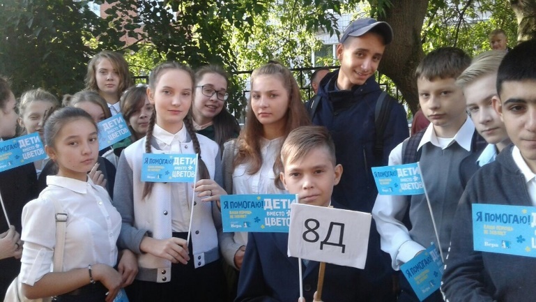 Сегодня всё больше детей приходят без цветов. Они и их семьи тоже «участники акции», но внесли в неё свои коррективы – никому они ничем не помогают. Они просто - без цветов.