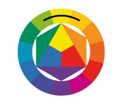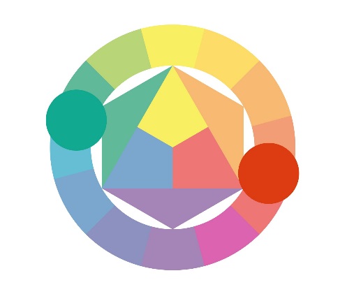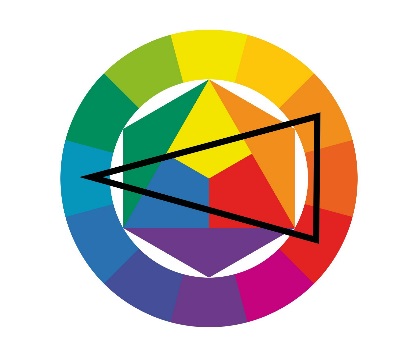 2. Если нужен менее сильный контраст, можно использовать сочетание из трёх цветов — контрастную триаду. В этой комбинации один из дополнительных цветов заменяется на два соседних.