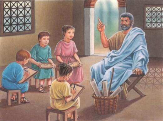 В Древнем Риме уже существовали школы, в которых учили мальчиков. Девочки учились дома.